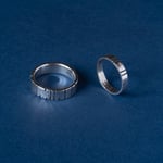 Adorned with a geometric pattern of notches and lines combined with with an organic hammer texture, these rings hold a secret meaning for the wearer and those that know.